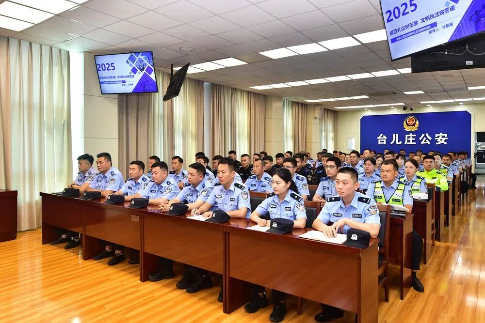 为深化公安队伍规范化建设,塑造良好职业形象,增强民辅警服务游客的主动性,提升其在复杂场景下的执法效能与应急处置能力,台儿庄公安分局于2025年9月25日至26日组织开展了2025年度警务礼仪培训,来自各业务警种的150余名民辅警参加。 培训聚焦一线岗位人员,围绕日常执勤、窗口服务、会议接待等场景的警务礼仪开展。队列礼仪教官通过理论讲解、实践操作等多样化教学方式,为学员们传授了全面且实用的警务礼仪知识,旨在增强服务游客的主动意识,提升与游客的沟通技巧和应急处置能力,规范执勤执法,着力打造一支形象良好、业务精湛的专业队伍,塑造台儿庄公安的良好形象。
