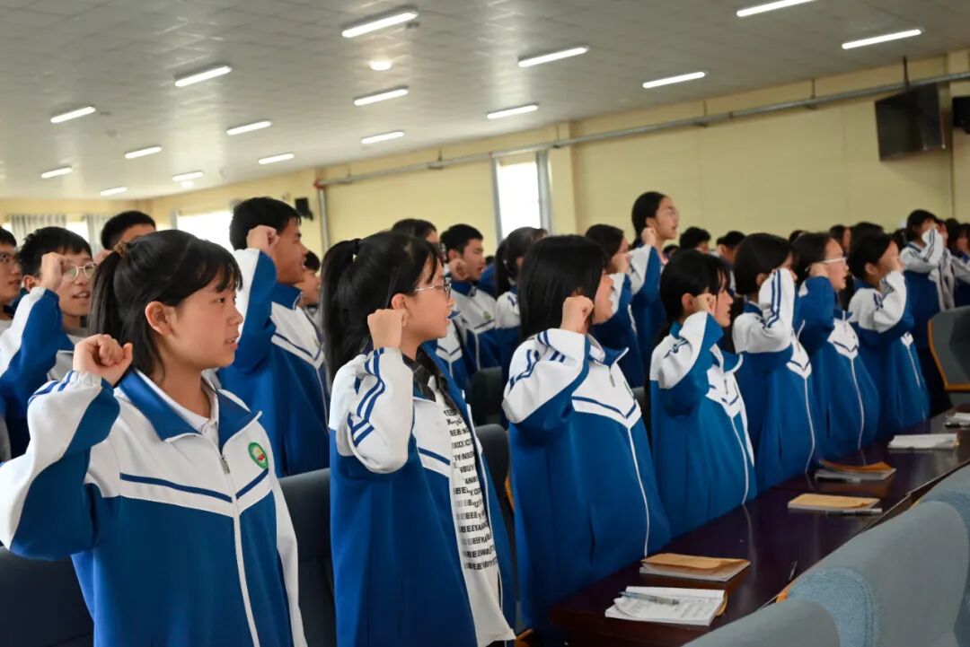 同学们还进行了“拒绝校园欺凌从我做起”集体宣誓,一声声坚定的誓言,表达出同学们抵制校园欺凌的决心。