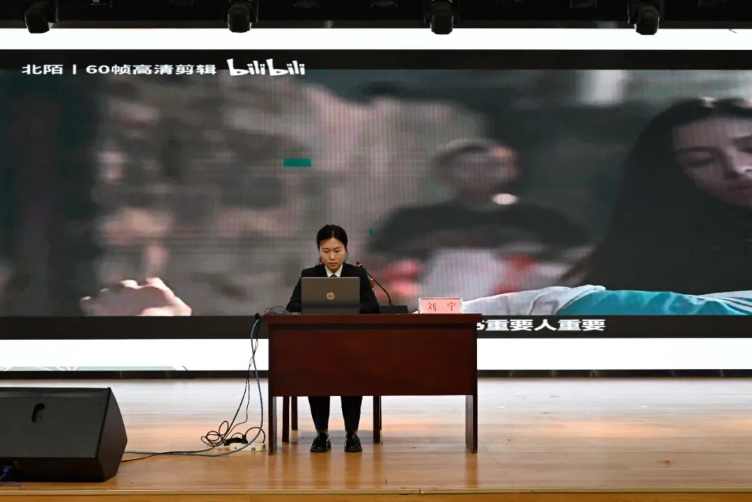 台儿庄区人民检察院石榴花团队成员、法治副校长刘宁作法治辅导报告,为学生们讲解了什么是校园欺凌及其危害,以及在遇见校园欺凌时该如何保护自己,进一步增强同学们的法律意识。