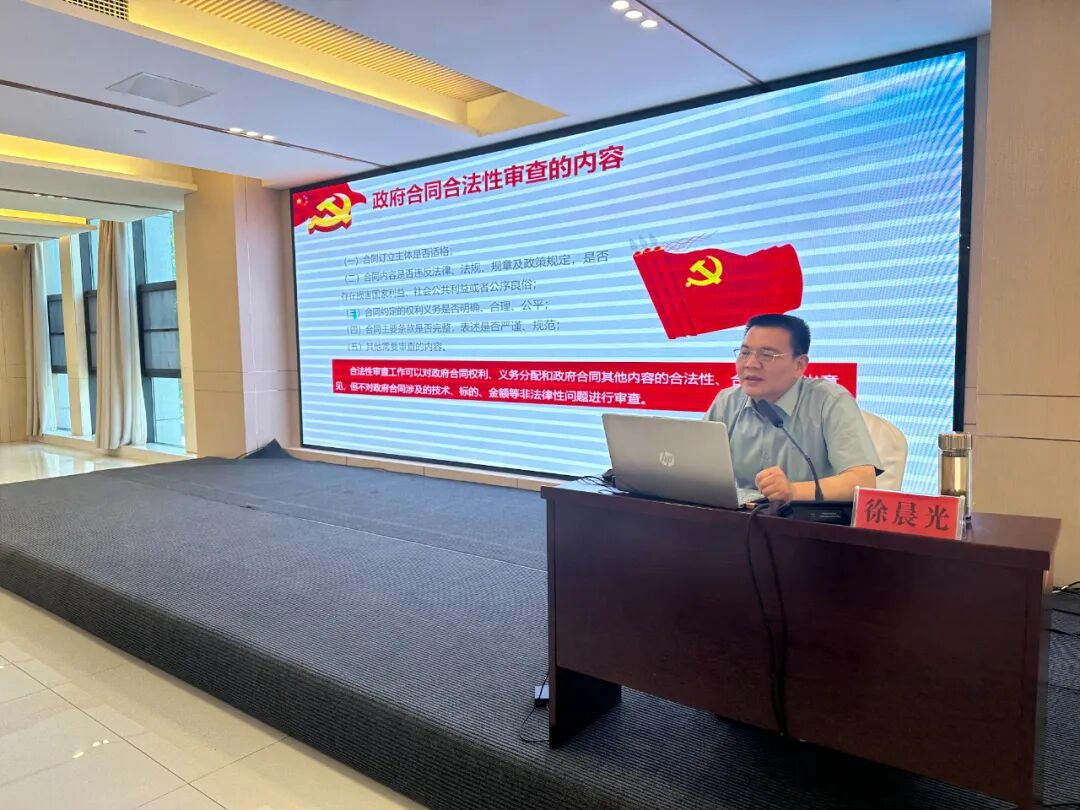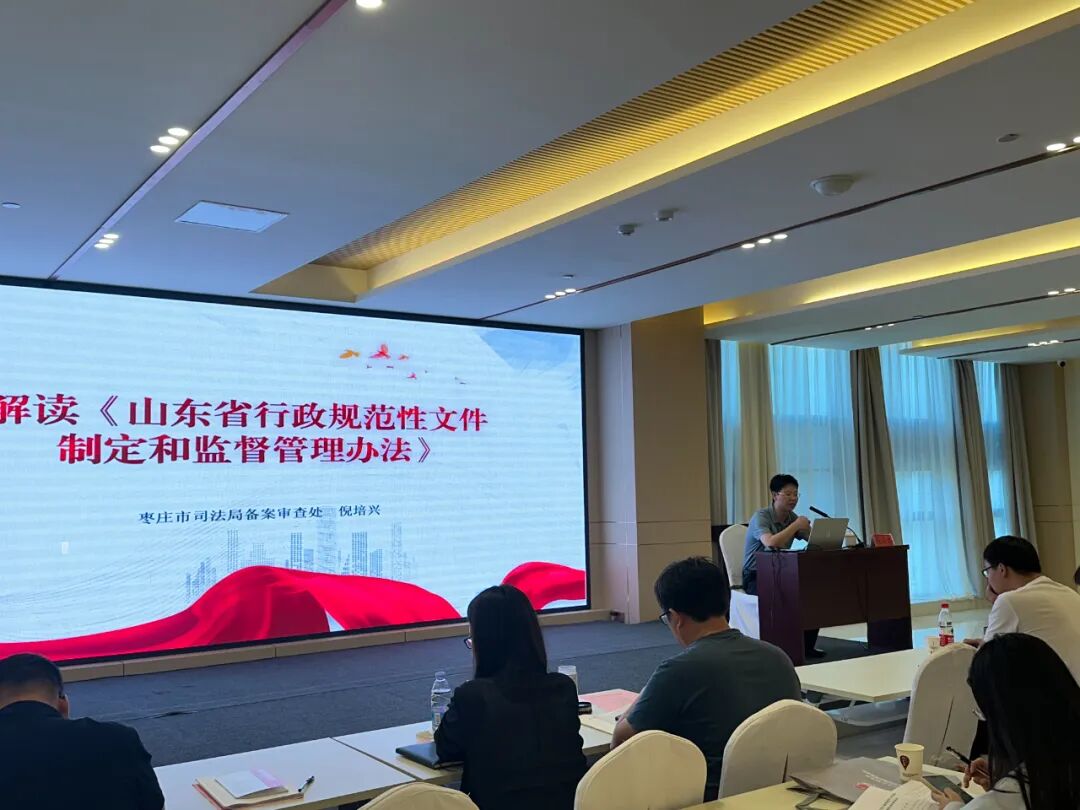 5月21日,台儿庄区2024年合法性审查工作培训班在台儿庄人才大厦成功举办。区司法局党组成员、副局长张景涛主持开班式并讲话。各镇(街)、区直有关部门单位法制工作机构负责人、具体从事合法性审查的工作人员共计42人参加了培训。 张景涛指出,举办此次培训班既是深入学习贯彻党的二十大精神和习近平法治思想的务实举措,也是全面提升我区重大行政决策、政府合同和行政规范性文件合法性审查工作能力和水平的现实需要,各参训人员要强化担当意识,磨砺业务技能,主动服务发展大局,共同推动我区合法性审查队伍正规化、专业化、职业化建设,为助力台儿庄高质量发展作出更大贡献。 培训班为期一天,上午由区委依法治区办法治调研室副主任、区司法局公职律师刘文娟作《重大行政决策程序规定实务讲解》,下午分别邀请了枣庄市司法局立法处(备案审查处)副处长倪培兴对《山东省行政规范性文件制定和监督管理办法》进行专题授课,区党政一体法律顾问、山东京杭律师事务所副主任徐晨光作《政府合同合法性审查工作实务》专题讲解。 此次培训内容丰富、实操性强,有效提升了全区合法性审查工作人员的业务水平和法律素养,为增强全区合法性审查工作质效、优化法治化营商环境,保障行政行为始终在法治轨道上规范运行奠定了坚实基础。