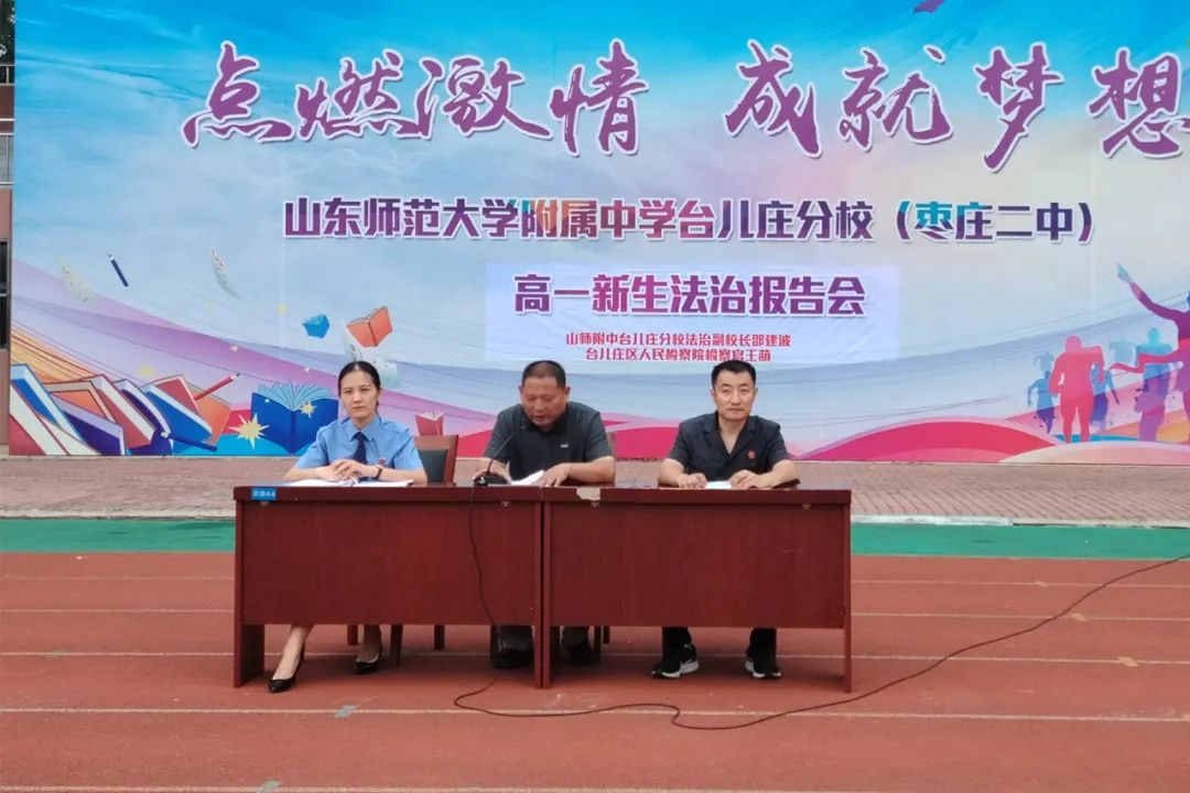 近日,区法学会组织区法院以“点燃激情 成就梦想”为主题开展送法进校园活动。区法院刑庭负责人、区法学会会员邵建波以法治副校长的身份,走进山东师范大学附属中学台儿庄分校(枣庄二中)为高一新生们送去“开学礼”,引导青少年“扣好人生的第一粒法治扣子”。在法治报告会上,邵建波结合学生的身心发展特点,围绕未成年人保护法、防“校园暴力”、校园安全等内容,通过身边的典型案例,以案释法,以讲授、互动、提问等生动有趣的形式,将法治教育和安全教育融合在一起,教育引导同学们尊法学法守法用法,自觉抵制各种不法行为,学会运用法律维护权益、保护自我。播一粒法治种子,育一方法治新田。