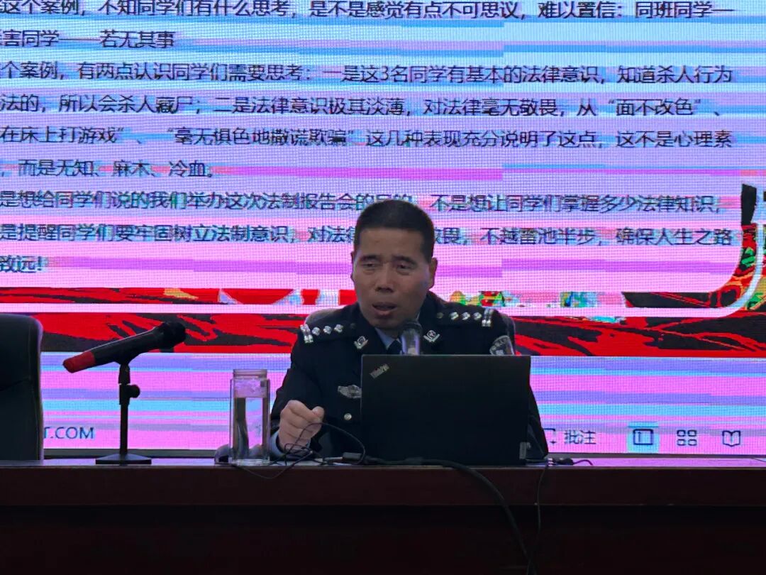 晁福海校长从《未成年人保护法》、校园霸凌、心理健康教育等方面,结合中学生特点,用一个个具体的案例,以案释法,以法论事,深入浅出的给我校师生上了一堂法治课,告诉我们在日常的学习和生活中应遵纪守法,增强自我保护和辨别是非的能力。