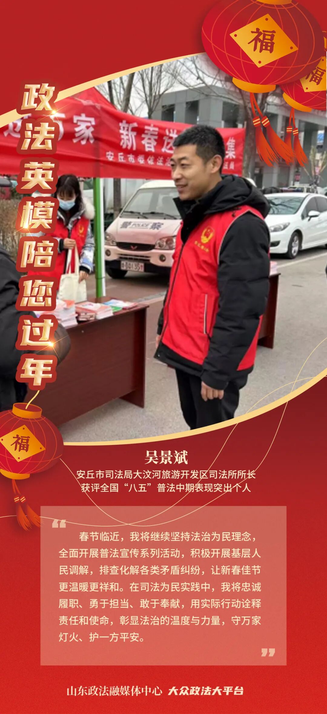 在新春佳节阖家团圆的温馨时刻,有这样一群人,默默坚守在岗位上,用责任与担当守护着社会的安宁,他们就是政法干警。他们舍小家为大家,用实际行动诠释着对党和人民的忠诚。在这个充满希望的新年,让我们向政法干警致以最崇高的敬意。是他们的坚守,让我们的生活更加美好;是他们的付出,让我们的社会更加和谐。感谢你们在这个新年里,陪伴着我们,守护着我们。愿你们在新的一年里,平安喜乐,万事胜意!