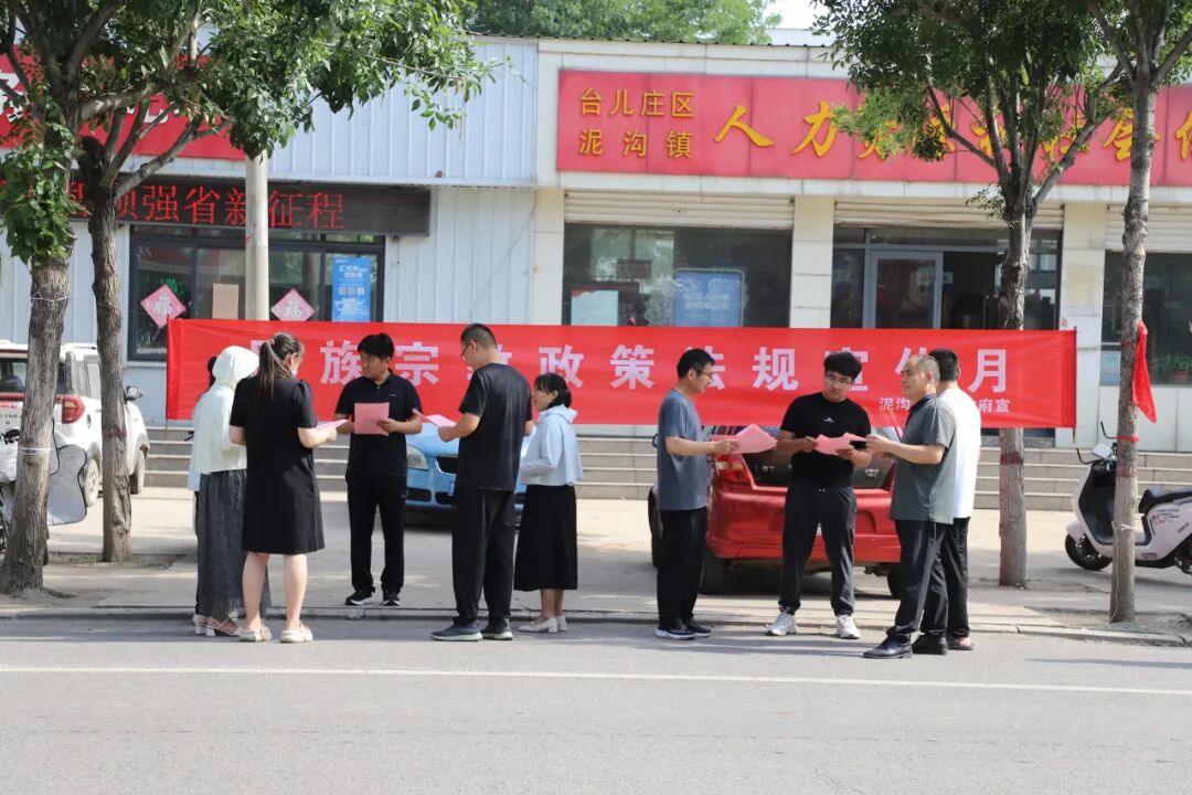 为深化民族宗教政策法规宣传学习,扩大覆盖范围、提升知晓率、强化民族宗教领域普法实效,近日,泥沟镇组织开展了民族宗教政策法规宣传活动,通过多层次、多形式的学习与宣讲,在辖区内掀起政策法规学习热潮。 泥沟镇积极开展民族宗教政策法规宣讲活动,镇民宗办工作人员对镇村干部普及党的民族宗教政策,进一步提高全体镇村干部对党的民族宗教政策法规知识的认识,为推动民族宗教工作奠定基础。 活动现场,工作人员通过发放宣传单页、现场讲解等方式,向来往群众普及《宗教事务条例》《山东省民族工作条例》等政策法规知识,增进了群众对民族宗教政策法规的认知。 通过入户讲解、悬挂条幅、利用村部大喇叭等方式宣传党的宗教政策法规,加大宣传教育力度,引导群众正确识别合法宗教活动和非法宗教活动,牢固树立法治意识。 接下来,泥沟镇将持续创新宣传形式,提升辖区群众对民族宗教政策法规的知晓度,为构建民族团结、社会和谐的局面贡献力量。