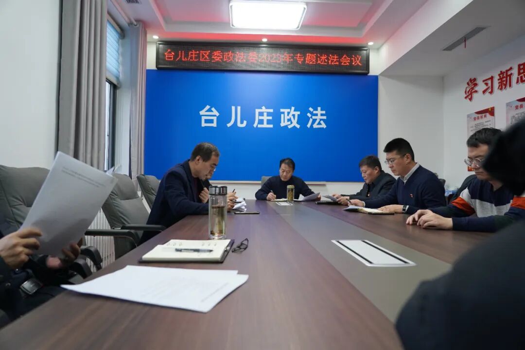 为全面贯彻落实党的二十大精神,深入学习习近平法治思想,切实提高政法干部运用法治思维和法治方式化解矛盾、维护稳定、应对风险的能力,12月22日,台儿庄区委政法委召开2023年度专题述法会议。区委政法委分管日常工作的副书记赵常国主持会议,区管干部和中层干部参加会议。