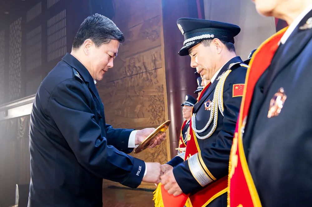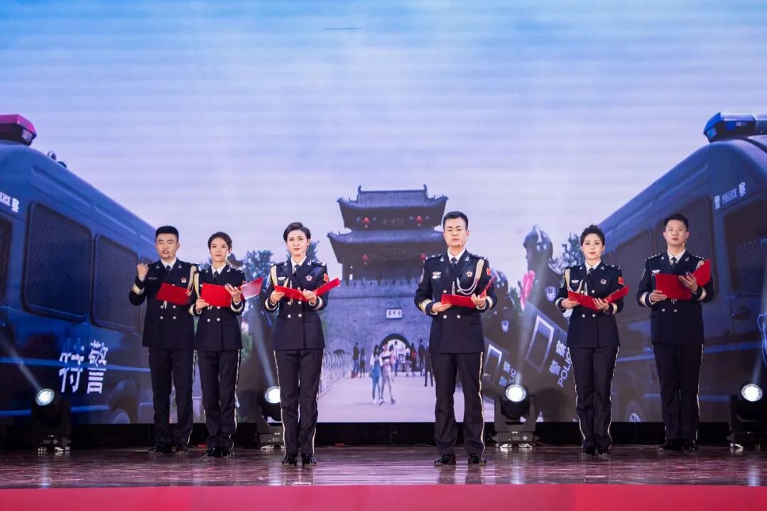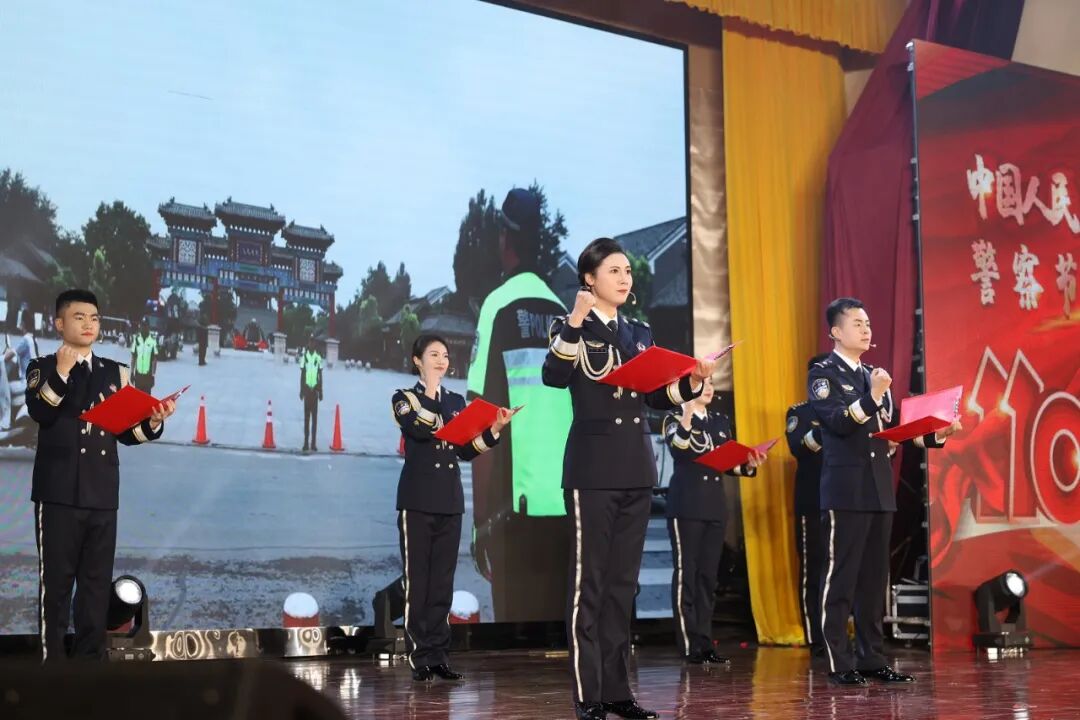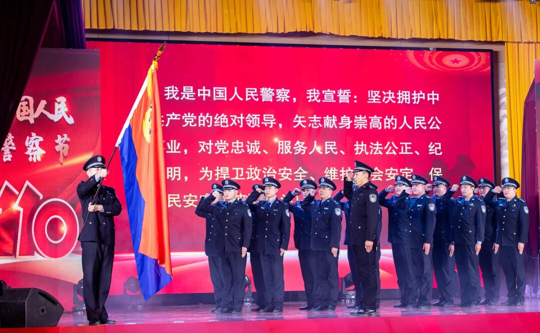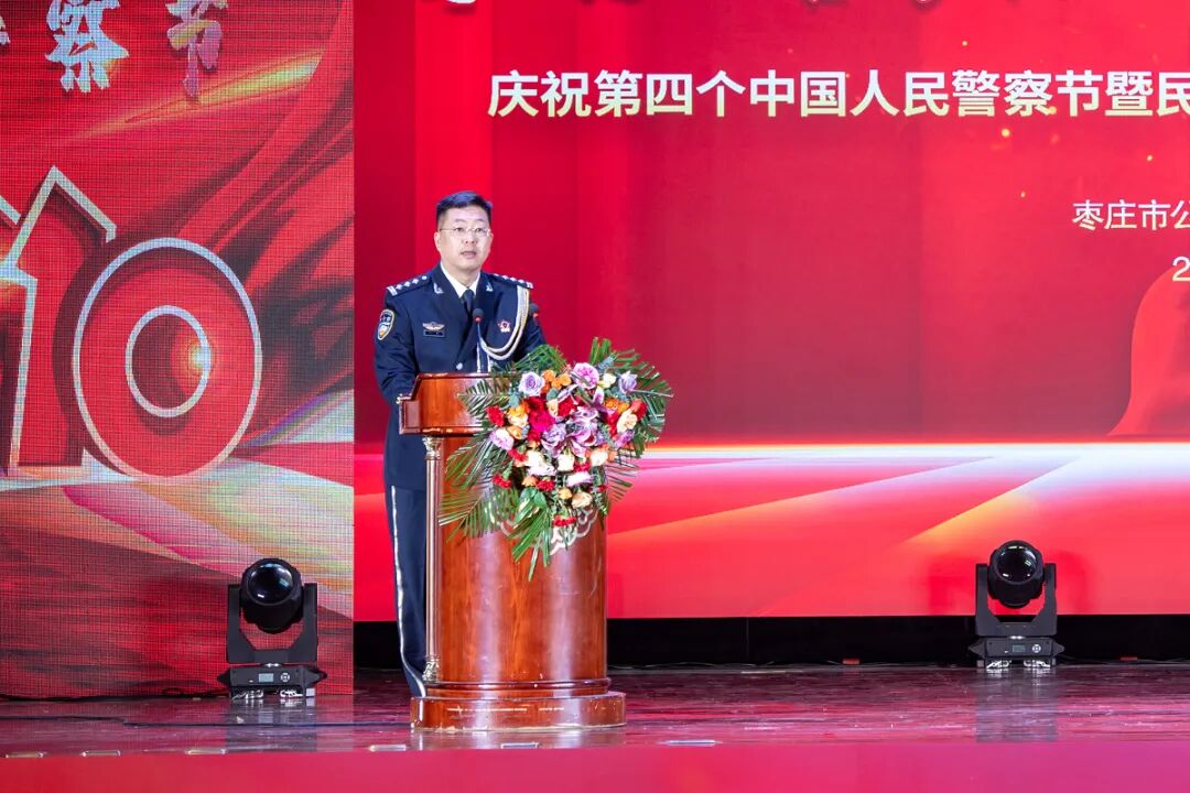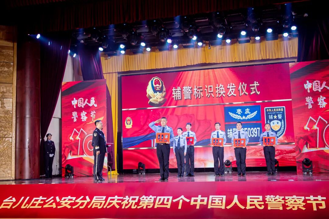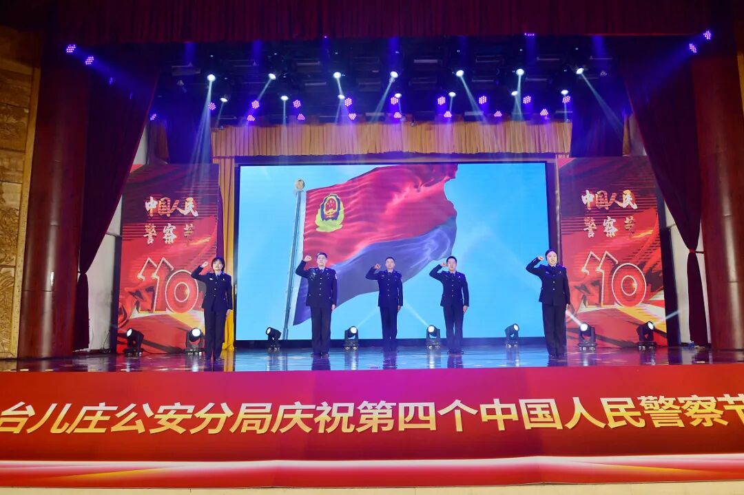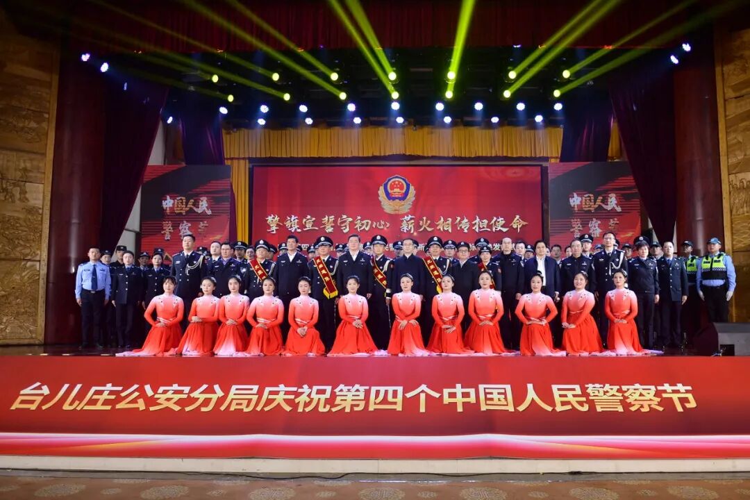 立警为公 执法为民 中国人民 警察节 — 忠诚履职 不怕牺牲 — 在第四个中国人民警察节来临之际,1月8日,台儿庄分局隆重举行庆祝第四个中国人民警察节暨民警荣休、新警入警、辅警标识换发仪式。副市长、市局党委书记、局长朱清彬,台儿庄区委副书记、区长刘晓璐,市局党委副书记、政委刘勇,台儿庄区委副书记王立军,市局领导徐枫、张鹏翔,台儿庄区委常委、政法委书记张瑞刚,台儿庄副区长、分局党委书记、局长李涛,市局指挥中心主任王景伟,分局党委副书记、政委颜伟,市局宣传处处长贾莉莉出席活动。 李涛在致辞中对各位领导的到来表示热烈欢迎,对市局党委和区委、区政府给予台儿庄公安工作的关心支持表示衷心感谢,简要回顾了去年以来全区公安机关取得的成绩,要求全体民辅警以庆祝中国人民警察节为契机,锚定“争第一、创一流”目标,聚力“创最安城市、做满意公安”,实施五大主题警务工程,全力为推进中国式现代化台儿庄实践创造安全稳定的政治社会环境。 活动在舞蹈《警旗下的诺言》中拉开帷幕。主题宣讲《警察的承诺》表达了公安民警为民情怀和守护平安的决心,掀起了“使命·担当”第一篇章。辅警标识换发仪式、诗朗诵《大运河畔护平安》、歌曲《忠诚》展现了在党的领导下投身台儿庄平安事业的忠诚形象,步入了“忠诚·荣光”第二篇章。民警荣休仪式、新警入警传承交接仪式、歌伴舞《为祖国放歌》,充分展示了公安机关继承传统、接续奋斗、昂扬向上、奋发有为的精神面貌,迎来了“传承·弘扬”第三篇章。 使命·担当 忠诚·荣光 传承·弘扬 活动在合唱《中国人民警察之歌》中落下帷幕。整场活动以“擎旗宣誓守初心、薪火相传担使命”为主题,充分展现了新时代台儿庄公安民辅警奋发进取的精神和务求实效的作风,有力提升了队伍凝聚力、向心力、战斗力。
