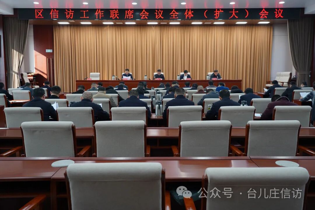 1月5日,台儿庄区召开区信访工作联席会议全体(扩大)会议。会议主要内容是贯彻落实市信访工作联席会议全体(扩大)会议精神和区委、区政府部署要求,通报2023年全区信访工作情况,安排部署2024年全区信访工作。 会上,区信访局局长许华通报了2023年全区信访工作情况,4个单位作了表态发言,副区长、区公安分局局长李涛传达了市信访工作联席会议全体(扩大)会议精神,区委副书记王立军作了重要讲话,会议由区委常委、政法委书记张瑞刚主持。 会议要求:一、认真总结成绩,不断坚定做好信访工作的信心决心。2023年,全区各级各部门认真贯彻落实中央关于信访工作决策部署和省、市、区有关工作安排,务实担当、主动作为,全区信访工作取得了良好成效,信访形势整体平稳向好。二、深刻认清形势,切实增强做好信访工作的责任感紧迫感。要进一步提高防范化解风险隐患的预判预警能力,全力补短板弱项。紧盯事要解决,全力破解信访突出问题,赢得群众认可和满意,全面提升信访工作成效。三、聚焦关键重点,精准发力推动信访工作高质量发展。围绕“降量退位”,抓好源头治理,以更加坚决的态度、更加有力的措施、更加务实的作风,扎实做好2024年信访工作,推动全区信访形势稳定向好。 区信访工作联席会议成员单位主要负责同志,区直有关部门分管负责同志,区信访局领导班子成员,各镇(街)党(工)委书记、分管信访工作的副书记、派出所所长和信访室主任参加了会议。 来源:台儿庄信访