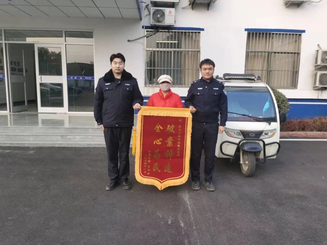 1月13日,家住台儿庄城区的贾女士将一面印有“全心为民 破案神速”的锦旗送至台北路派出所办案民警手中,感谢派出所小案侦防队帮其找回被盗的电动三轮车。