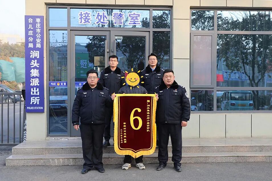 1月12日,辖区群众田先生将一面印有“6”的锦旗送至涧头集派出所,感谢派出所小案侦防队帮其找回被盗三轮车电瓶。
