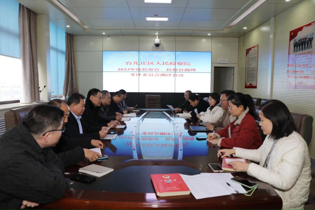 日,台儿庄区人民检察院召开检察官、检察官助理考评委员会测评会议,