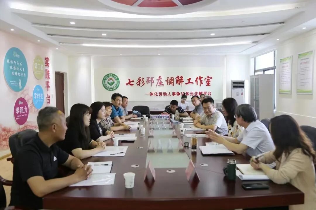 三、坚持分类施策,“零负担”减轻诉累。针对不同争议纠纷,坚持分类施策,不断优化协商、化解方法,努力实现劳动人事争议“三种态势”:即使劳动争议在基层、企业内部得到解决成为绝大多数,申请仲裁的成为少数,提起诉讼的成为极少数。一是加强商调衔接。对未出现的争议强化预防,“听竹”工程采取主动排查、征求意见等方式,及早发现苗头性问题,坚持优先协商,引导用人单位建立内部协商机制,通过协商将纠纷消除在萌芽状态,实现“小事不出车间、大事不出公司”。对协商不成的争议进行调解,协商调解全过程无缝衔接。二是加强调裁衔接。对于调解成功的案件,根据当事人意愿到仲裁机构进行合法性审查,必要时置换调解书。对于调解不成的案件,按照材料和时限要求及时转入有管辖权的仲裁机构。三是加强诉调对接。加强与台儿庄区人民法院沟通对接,建立信息共享、疑难问题和典型案件研讨、联合培训、巡回法庭等多项工作制度。积极发挥法院“总对总”在线诉调平台作用,充分利用七彩邳庄品牌调解室,组织辖区内企业进行调解,减轻劳动者的诉累。