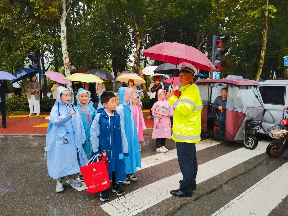 9 月 11 日至12日台儿庄区迎来新一轮降温降雨天气给群众出行带来不便学校周边交通压力骤增“雨天路滑,小朋友们一定要注意安全!”“谢谢交警叔叔!”为保障学生出行安全,防范道路交通事故,台儿庄公安分局交通管理大队迅速反应,多措并举,加强雨天交通管控。执勤民辅警全员坚守辖区各 “护学岗”,在重点路段加大巡逻力度,引导接送车辆有序停放、即停即走,避免造成交通拥堵。民辅警耐心提醒驾驶人减速慢行、保持安全车距,叮嘱学生过马路时注意观察路况,全力构建校园周边道路交通安全防线,用坚守为学生撑起上学路上的 “平安伞”。台儿庄交警温馨提示1. 学校周边道路易发生拥堵,请家长提前规划好接送时间和路线,错峰出行,避免拥堵。2. 如遇拥堵,请耐心等候,做到不超车、不插队、不随意并线,服从现场交警指挥。3. 孩子下车时,请务必提醒孩子从右侧下车,并且下车前,观察后方交通情况,避免“开门杀”。4. 上学、放学高峰时段,学校周边交通相对繁忙,请家长自觉遵守交通安全法规,听从现场交警指挥,即停即走,有序接送。5. 若家长骑电动车接送孩子,请务必做到一人一盔,不要闯红灯,不要在车流中随意穿插。为了师生和家长的安全家长一定要将孩子安全放心间切莫忽视微小细节将安全防范付诸于行动为孩子铸就强大保护伞